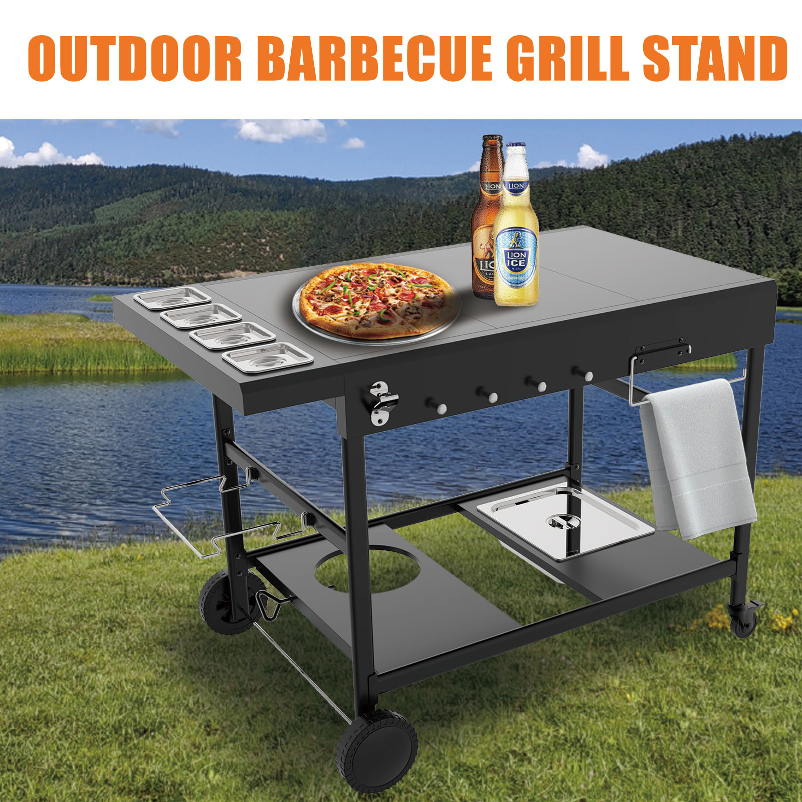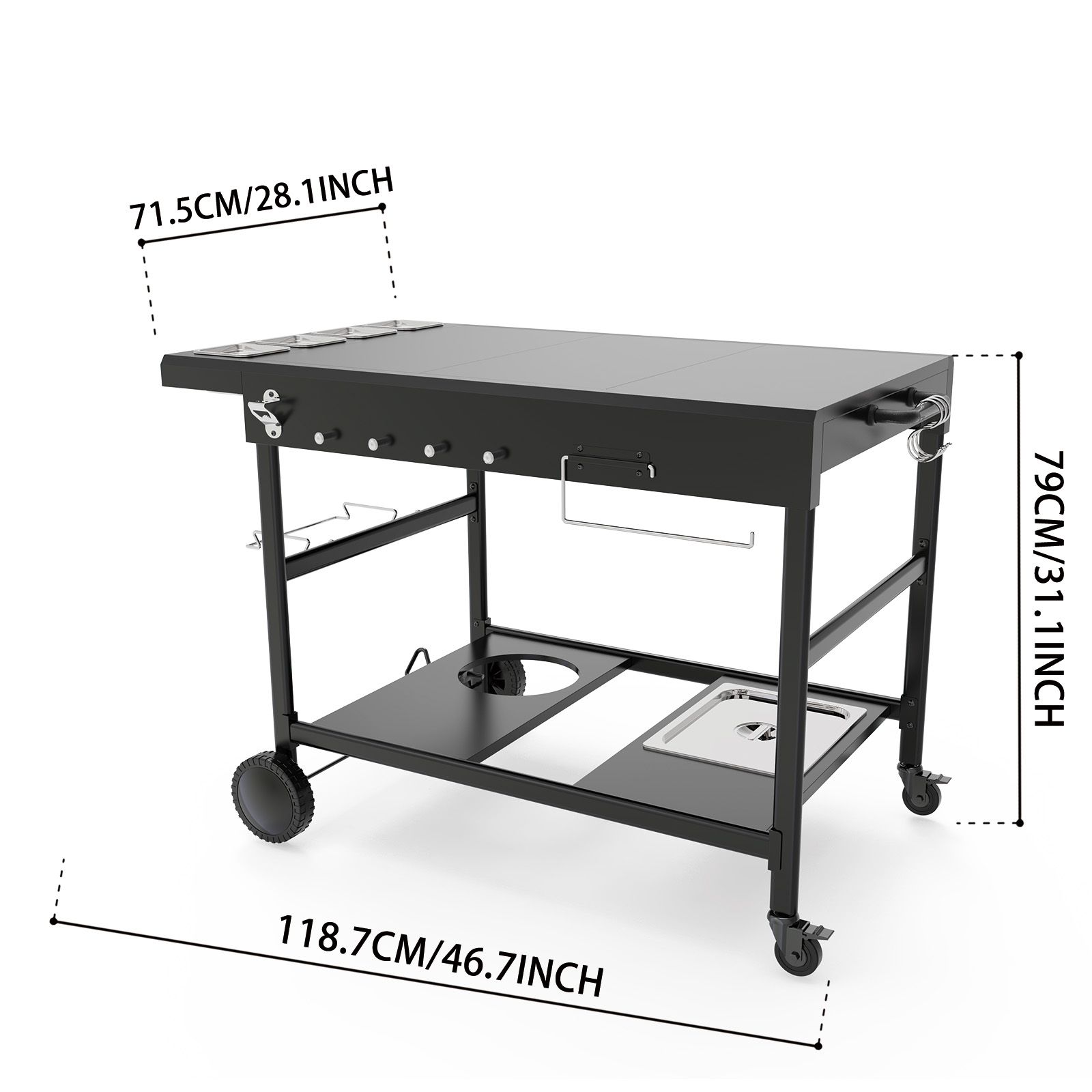 Multifunctional Grill Table Suitable for both indoor and outdoor use, it effortlessly serves as a mobile dining station, a practical worktable, or a spacious prep cart for your flat-top grilling needs. |