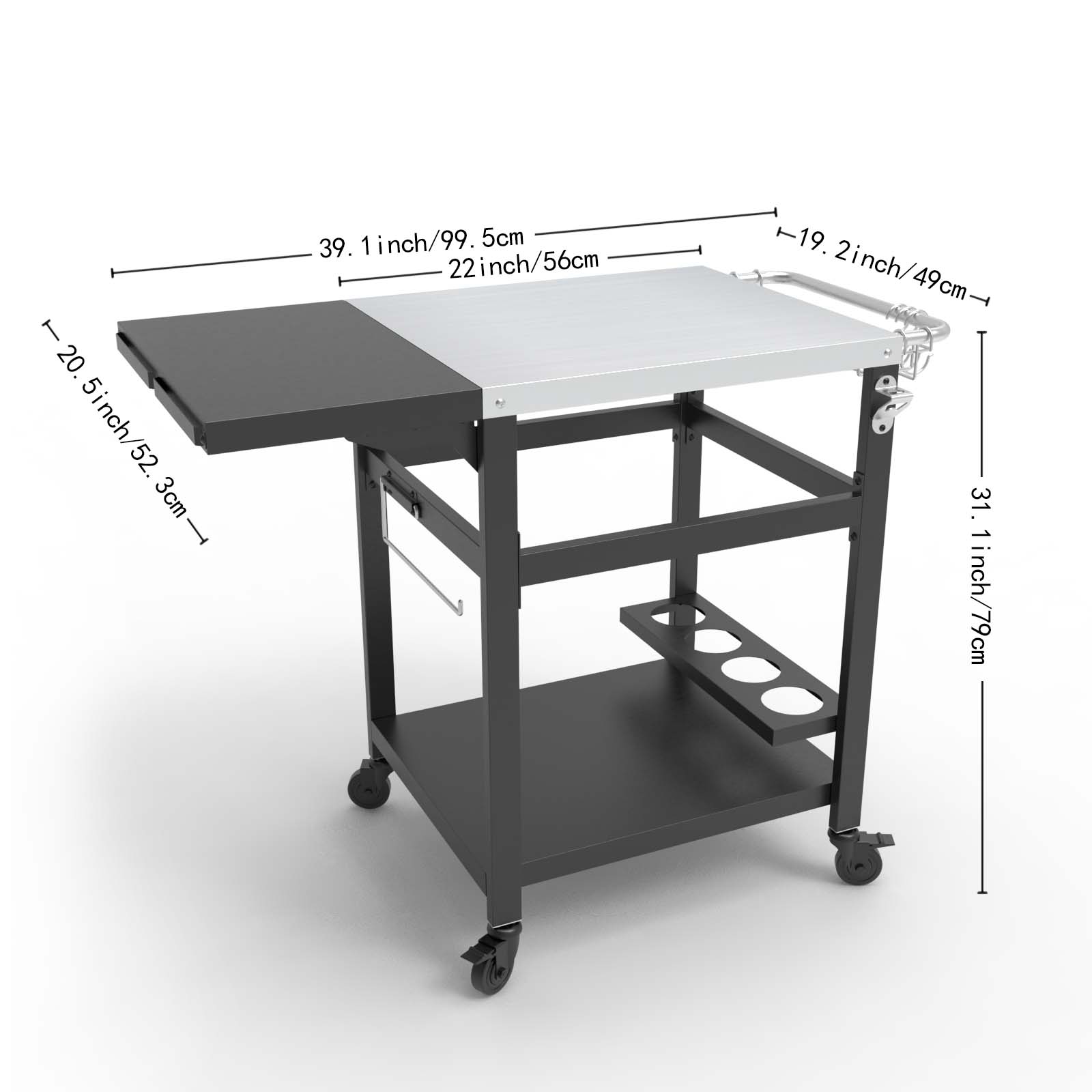 This versatile rolling cart transforms to meet your every need—serving equally well as an outdoor pizza prep station, mobile kitchen island, storage organizer, patio serving table, entertainment bar cart, BBQ grilling center, garden potting bench, dining-side assistant, or tool caddy. Seamlessly adaptable for both indoor and outdoor use, it’s the only cart designed to keep pace with your lifestyle.